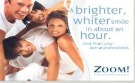 | DO YOU WANT ZOOM!? The Zoom! Chair-side Whitening System is scientifically advanced, patent pending, tooth whitening procedure. It's safe, effective and fast, very fast. In less than an hour your teeth will become dramatically whiter. Zoom! Chair-side Whitening is ideal for anyone looking for immediate results. The convenience of Zoom! in comparison to days of wearing trays or strips, makes it the perfect choice for the busy individual. |